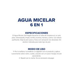 Resuelve la rutina de limpieza en un solo paso: desmaquilla, limpia, tonifica, ilumina, hidrata y calma. Con efecto purificante. Deja la piel suave y fresca sin sensación de oleosidad. Sin alcohol. Indicada para todo tipo de piel. Presentación con más contenido, por 400 ml.