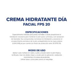 Hidrata por 72 h. y protege la piel manteniéndola suave, luminosa y saludable. Previene manchas. Indicada para piel normal a seca.