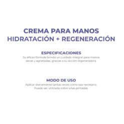 Su eficaz fórmula brinda un cuidado integral para manos secas y agrietadas, gracias a su acción regeneradora.