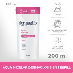 Dermaglos agua micelar todo en uno refill X200ml