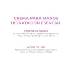 Su eficaz fórmula brinda un cuidado integral para manos, uñas y cutículas, dejando la piel suave y elástica.