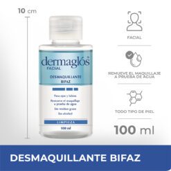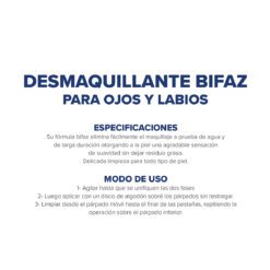 Su fórmula bifaz elimina fácilmente el maquillaje a prueba de agua y de larga duración. Sin residuo graso. Para labios y ojos. Indicado para todo tipo de piel.
